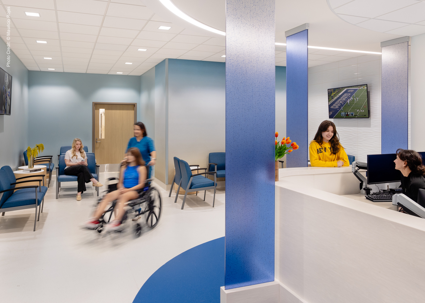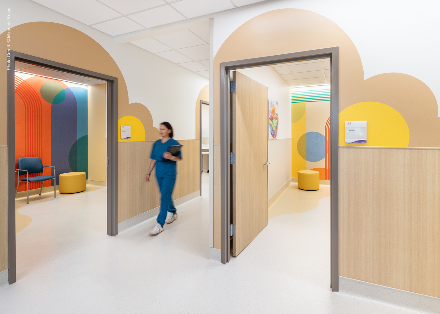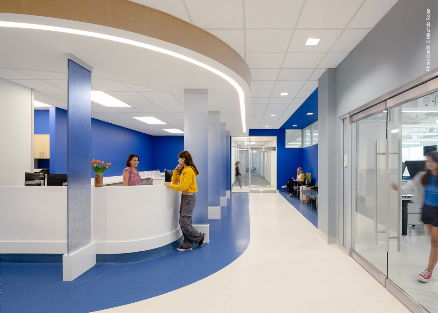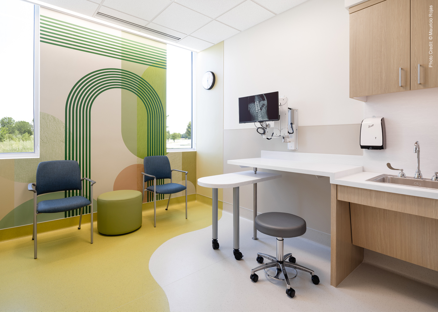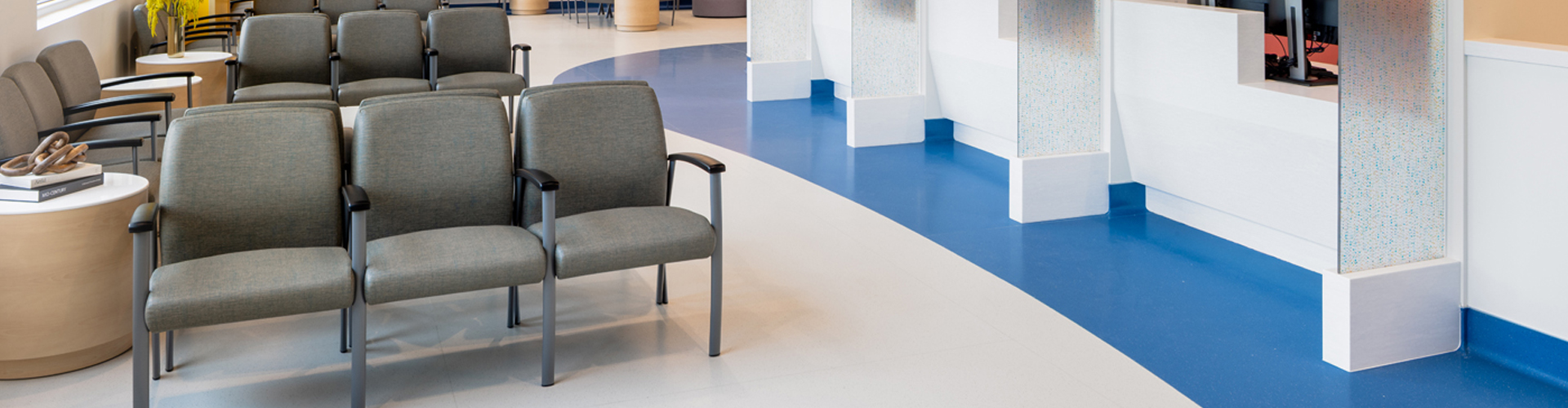 Opened in Fall 2025, this clinic provides advanced musculoskeletal, sports medicine, fracture and concussion care to children and their families. Mondo products were chosen for their level of performance in this type of environment, offering a balance of comfort underfoot, ease of maintenance, and timeless visual appeal. The installation features over 27,000 square feet of Mondo Granito with a carefully curated palette of G431 Firenze, G473 Wasabi, G371 Maldives, G342 Province Blue, G315 Natural Chamois and G365 Sunrise. These rich tones seamlessly blend with the design while contributing to a quiet, calming interior environment, essential for both patients and staff.