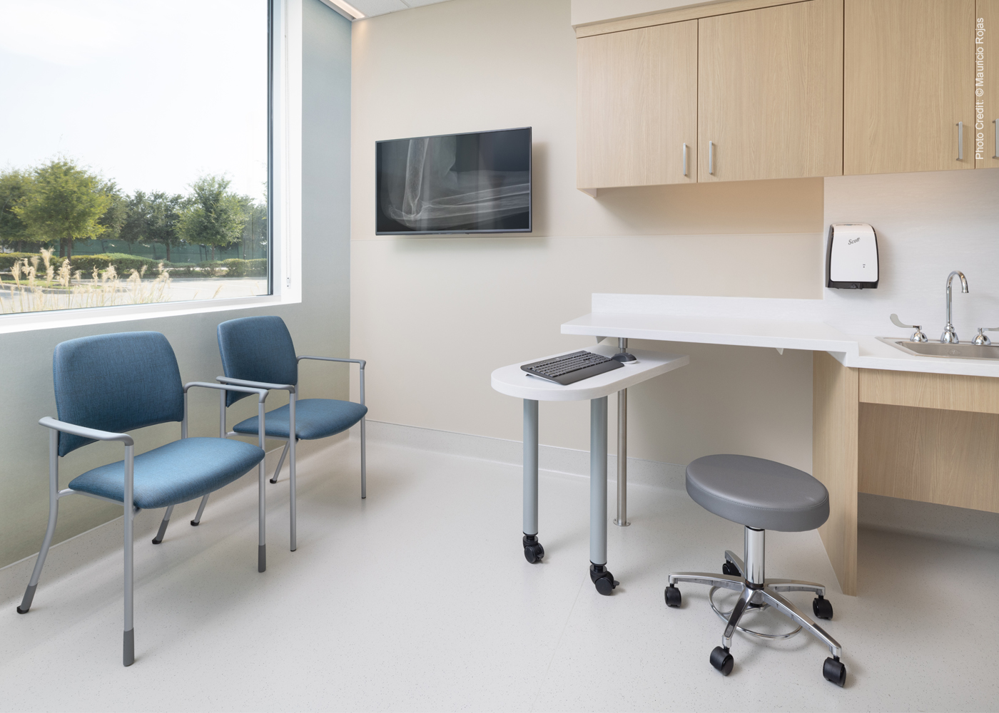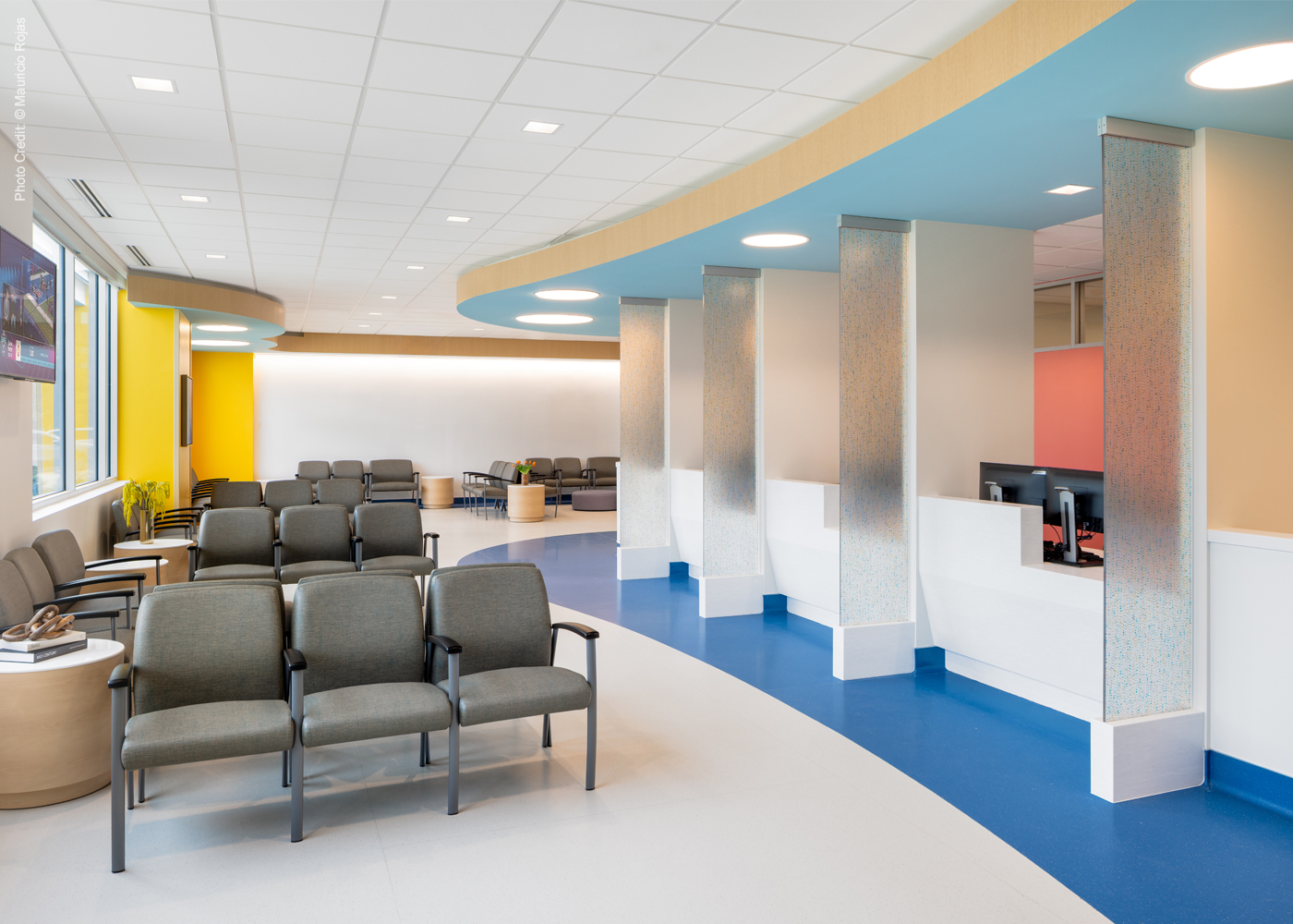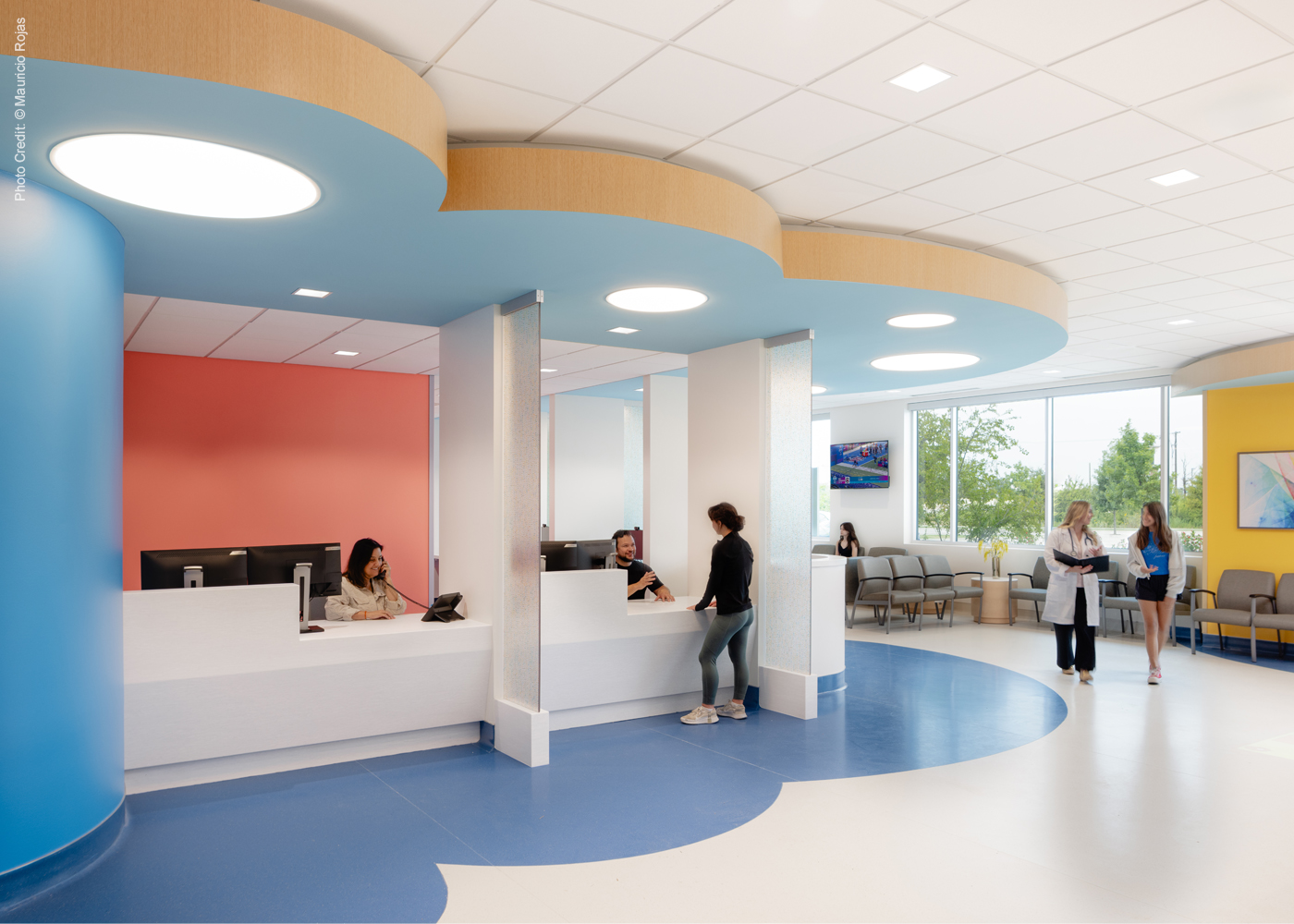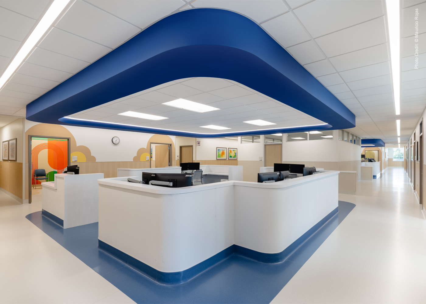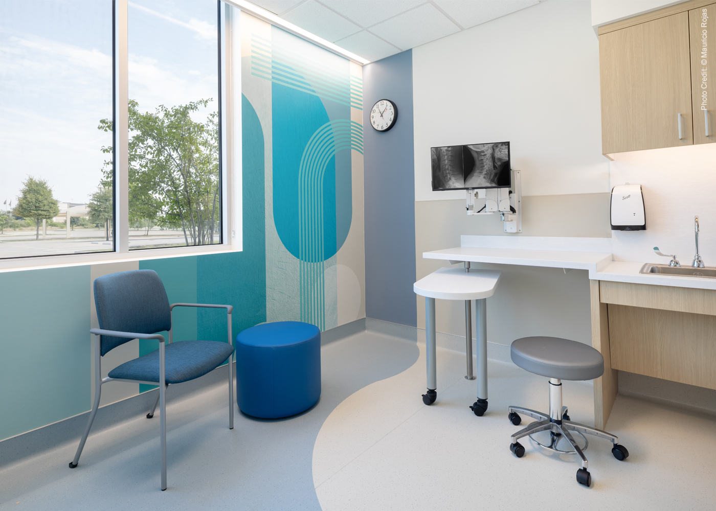 Opened in Fall 2025, this clinic provides advanced musculoskeletal, sports medicine, fracture and concussion care to children and their families. Mondo products were chosen for their level of performance in this type of environment, offering a balance of comfort underfoot, ease of maintenance, and timeless visual appeal. The installation features over 27,000 square feet of Mondo Granito with a carefully curated palette of G431 Firenze, G473 Wasabi, G371 Maldives, G342 Province Blue, G315 Natural Chamois and G365 Sunrise. These rich tones seamlessly blend with the design while contributing to a quiet, calming interior environment, essential for both patients and staff.